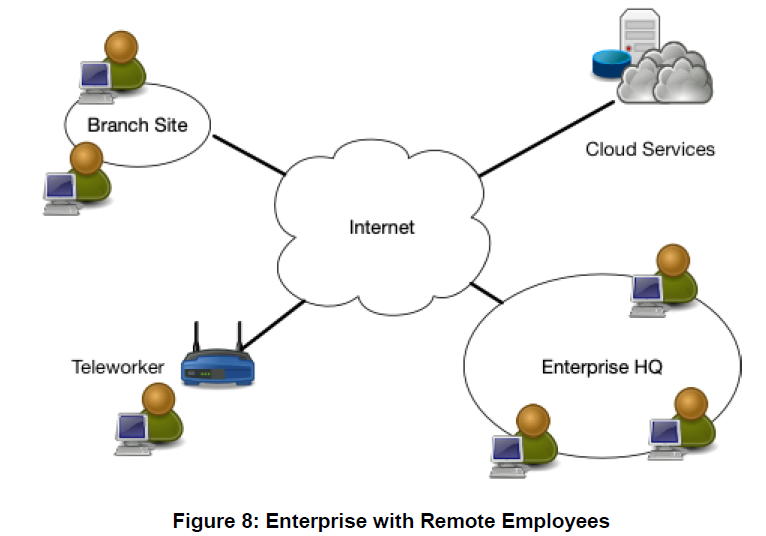 A typical enterprise’s infrastructure has grown increasingly complex. A single enterprise may operate several internal networks, remote offices with their own local infrastructure, remote and/or mobile individuals, and cloud services. This complexity has outstripped legacy methods of perimeter-based network security as there is no single, easily identified perimeter for the enterprise. Perimeter-based network security has also been shown to be insufficient since once attackers breach the perimeter, further lateral movement is unhindered.