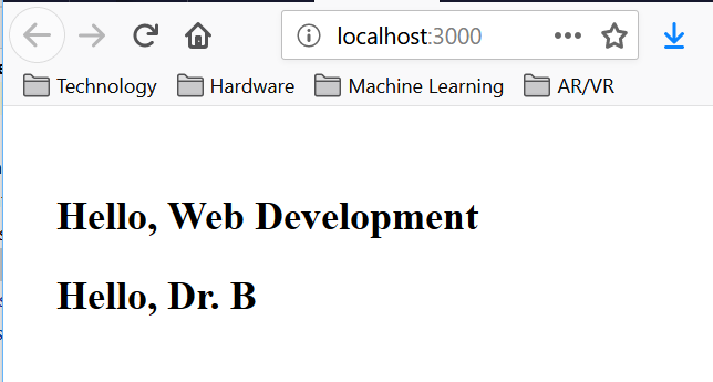 <Welcome> tag in HTML, this is our own component<Welcome name="Web Development" />;name attribute gets sent into the component function as a field of the props argument.props as read-only. Do not write to them ever!